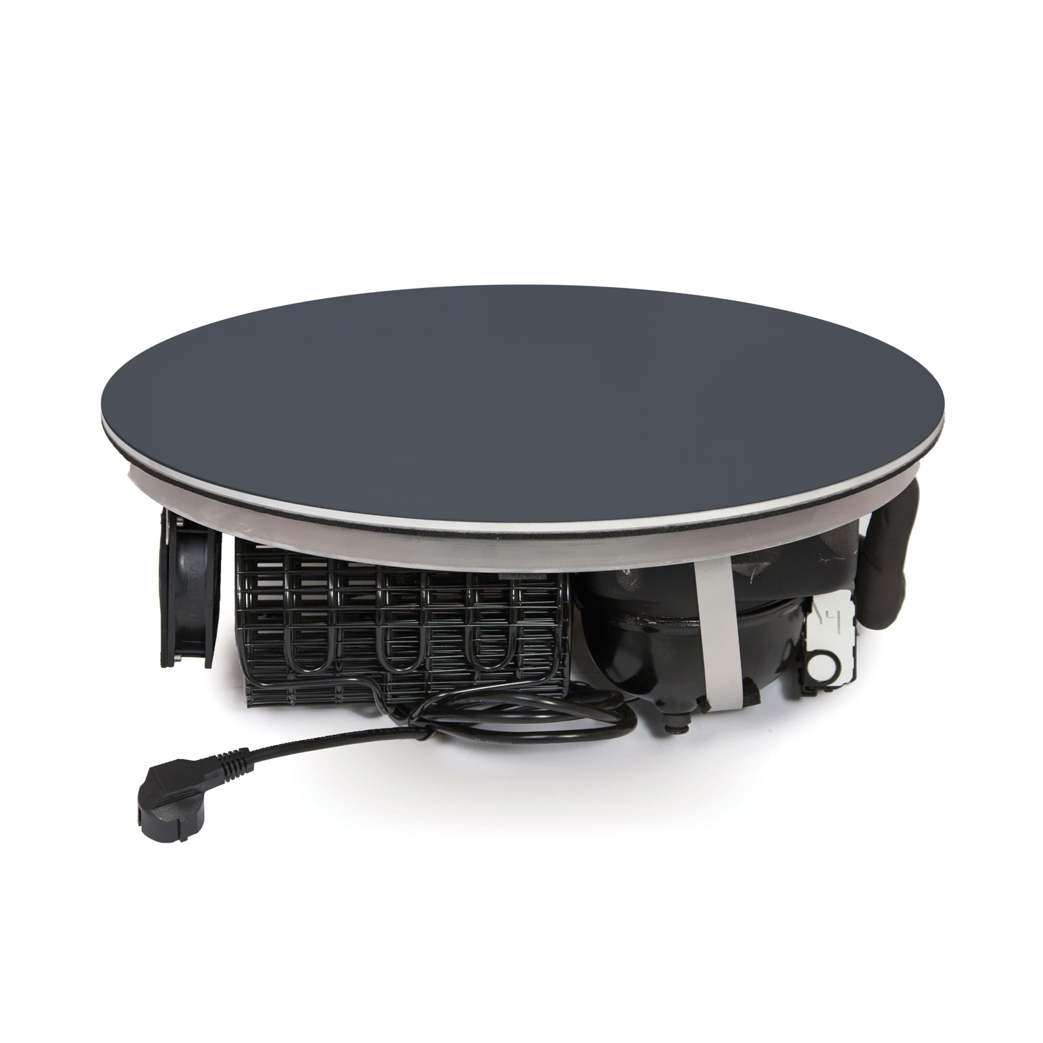 – iebūvējama aukstā virsma ar apaļu antracīta krāsas stikla virsmu