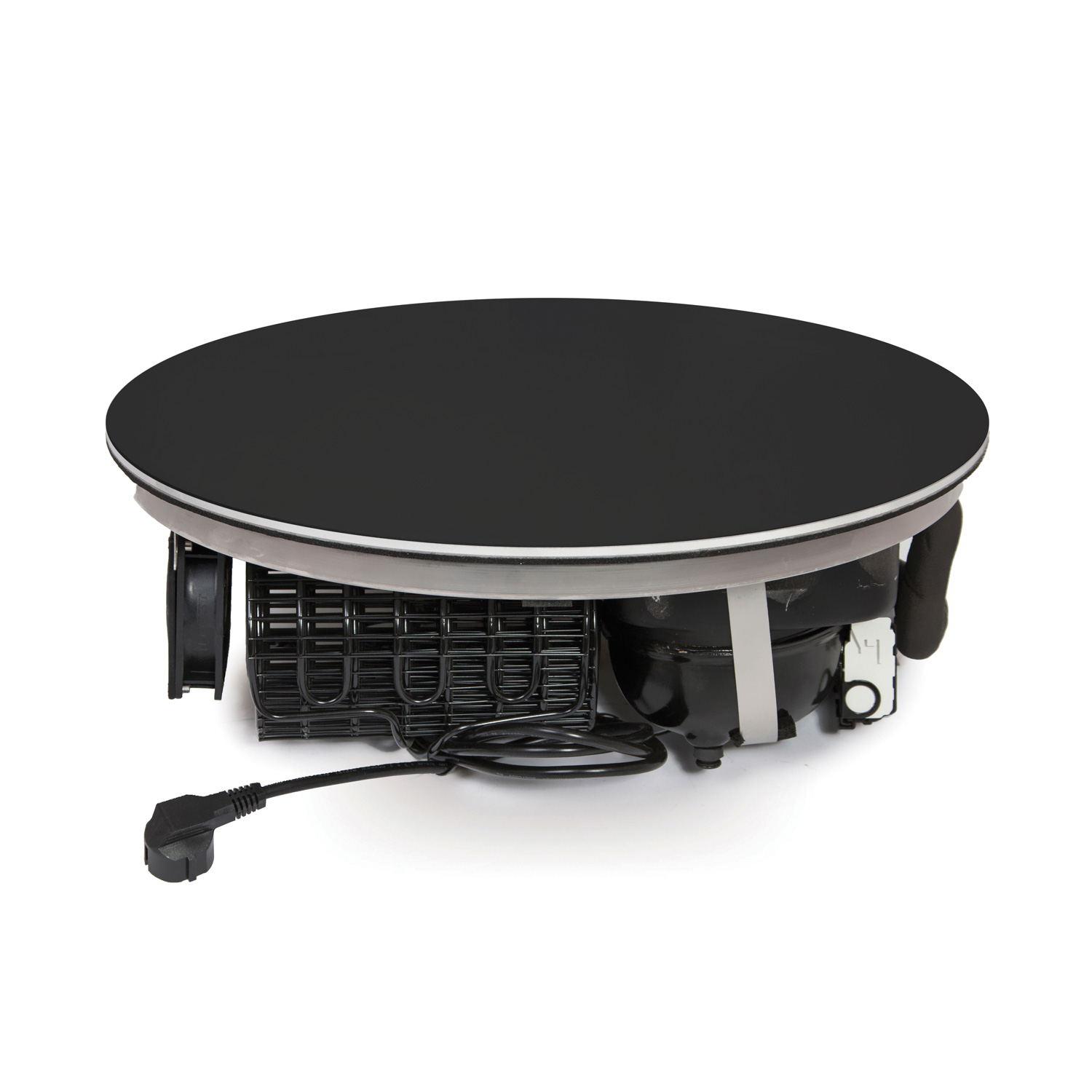 – iebūvējama aukstā virsma ar apaļu melni pelēkas krāsas stikla virsmu
