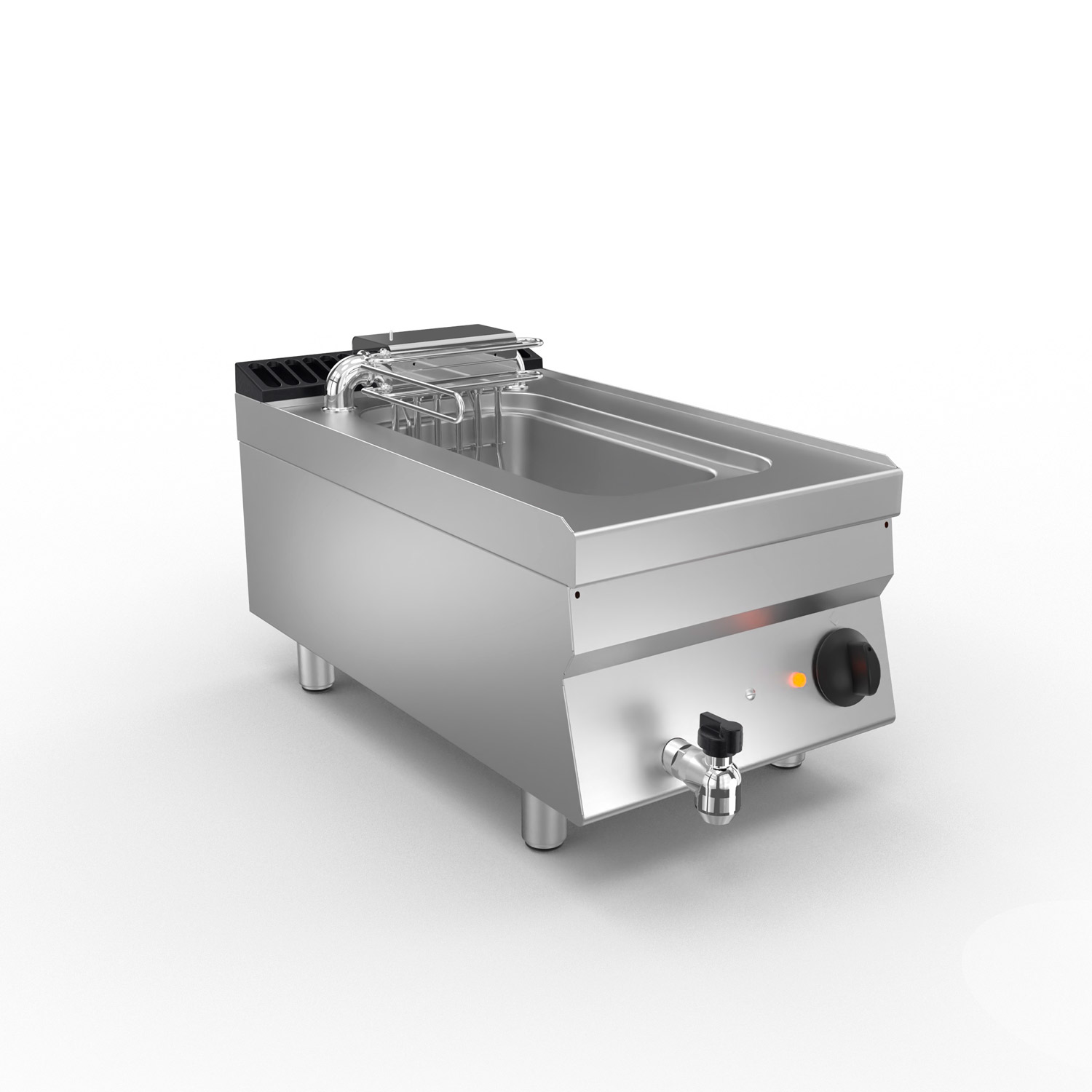 –Standartkomplektācijā ar apakšējo režģi, fritēšanas grozu un tvertnes vāku