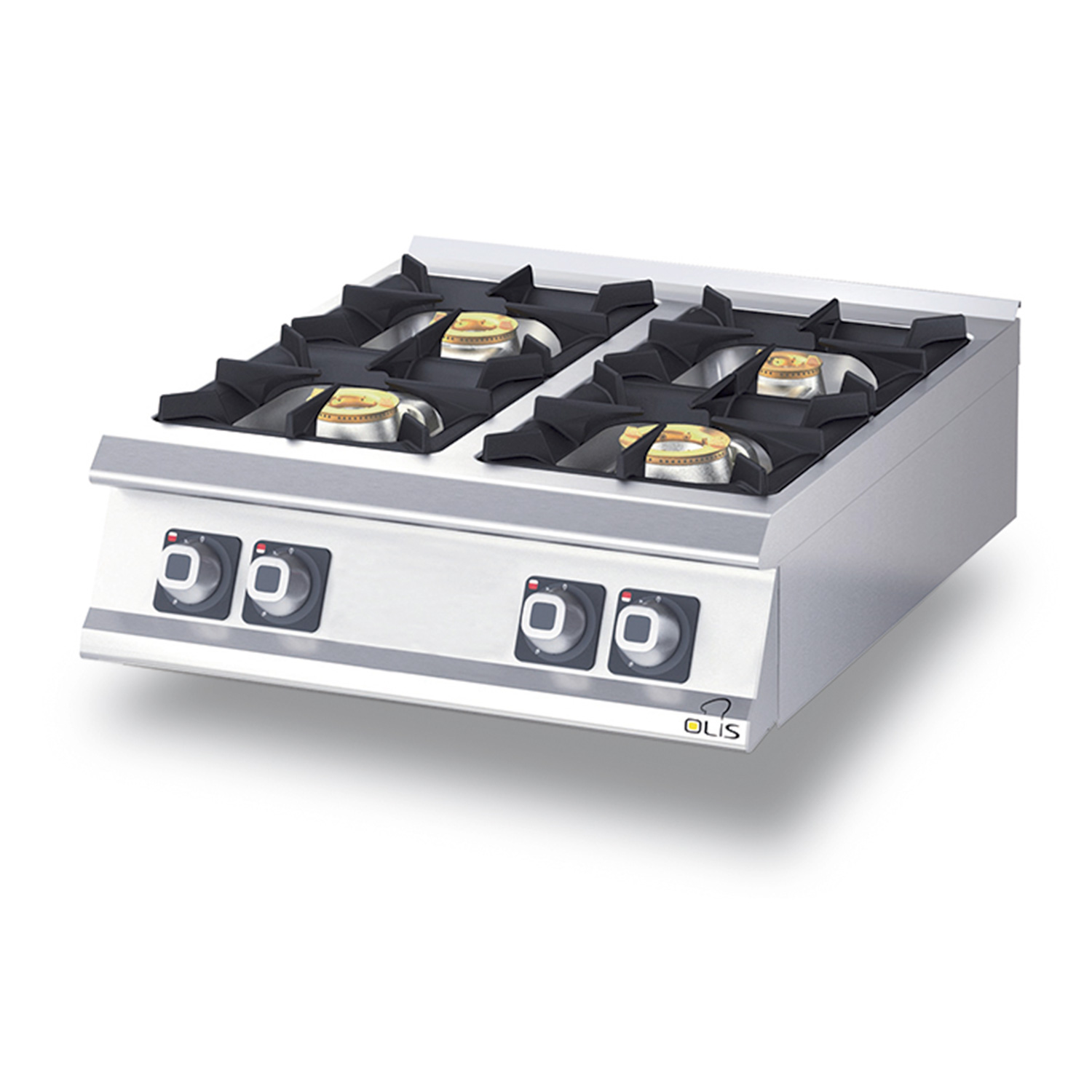 Metos Dimante D74/10TCG gāzes plītij ir četri ar cieto niķeli pārklāti degļi.